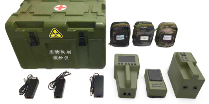 产品组成:手持式生物气溶胶报警器、手持式生物气溶胶采样器、手持式生物快速检测器各1台,携行箱1个,携行包3个,媒介采样包1个,检测试剂包1个,模拟训练包1个。