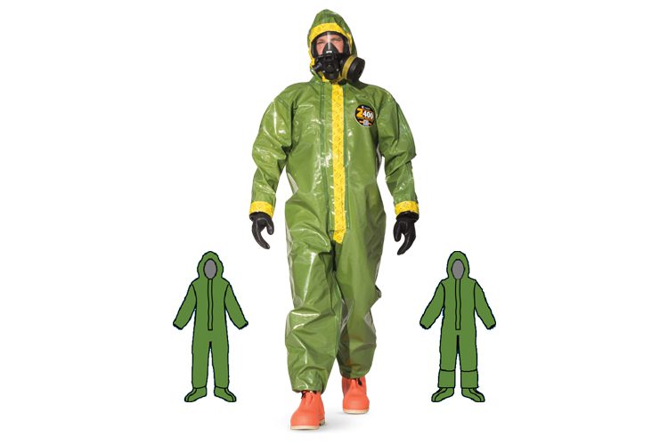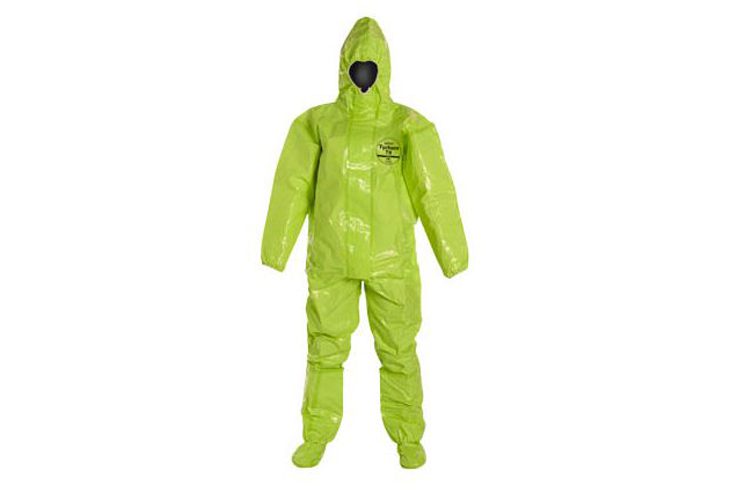 Tychem®TK127T连体服,前面开口,弹性袖口,双层拉链门襟,带袜靴,靴保护盖(外靴自配);广泛的化学品防护性能,可用于化学危险品…